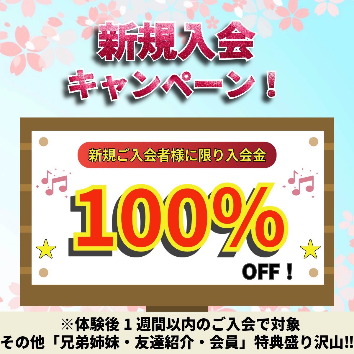 📣今なら体験後1週間以内のご入会で、入会金(5,000円)無料キャンペーン実施中!