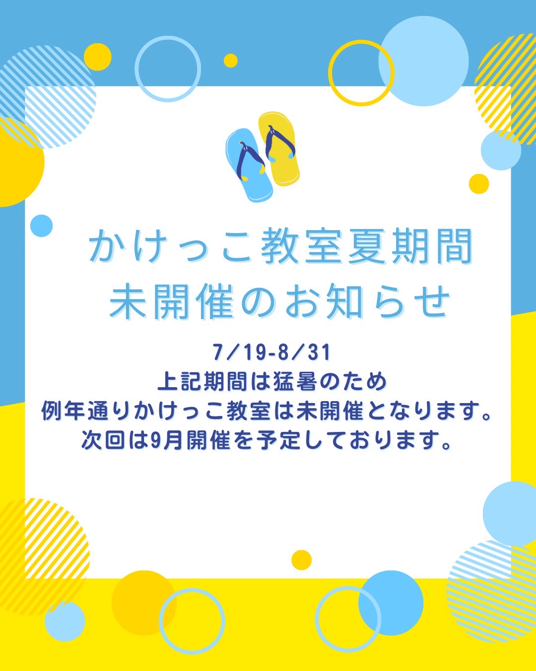 夏休み期間、7月19日〜8月31日の期間は猛暑により、例年通り少人数制「かけっこ」教室は未開催となります。